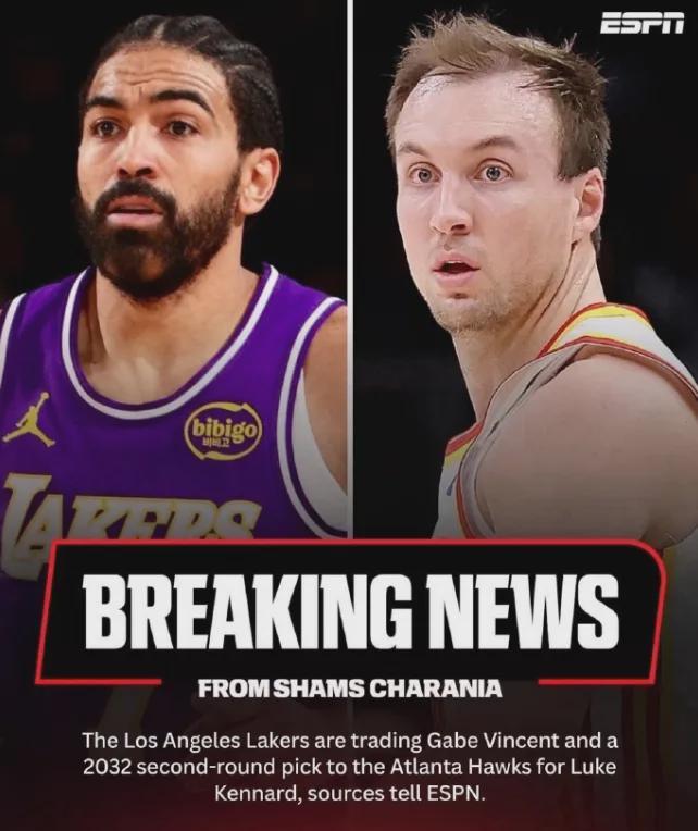 今年交易截止日前,湖人送出文森特和一个次轮签,从老鹰挖来肯纳德。