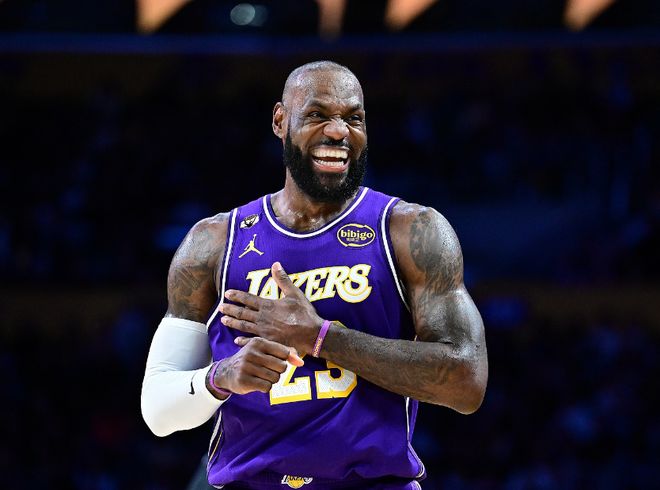 背靠背46+7三分!LBJ又迎里程碑 拥抱77破不和流言还被官方戴皇冠
